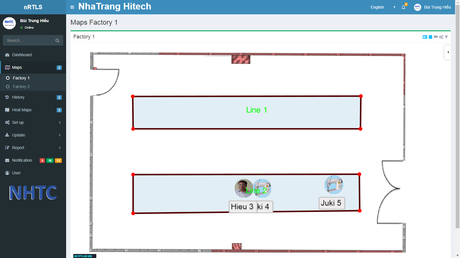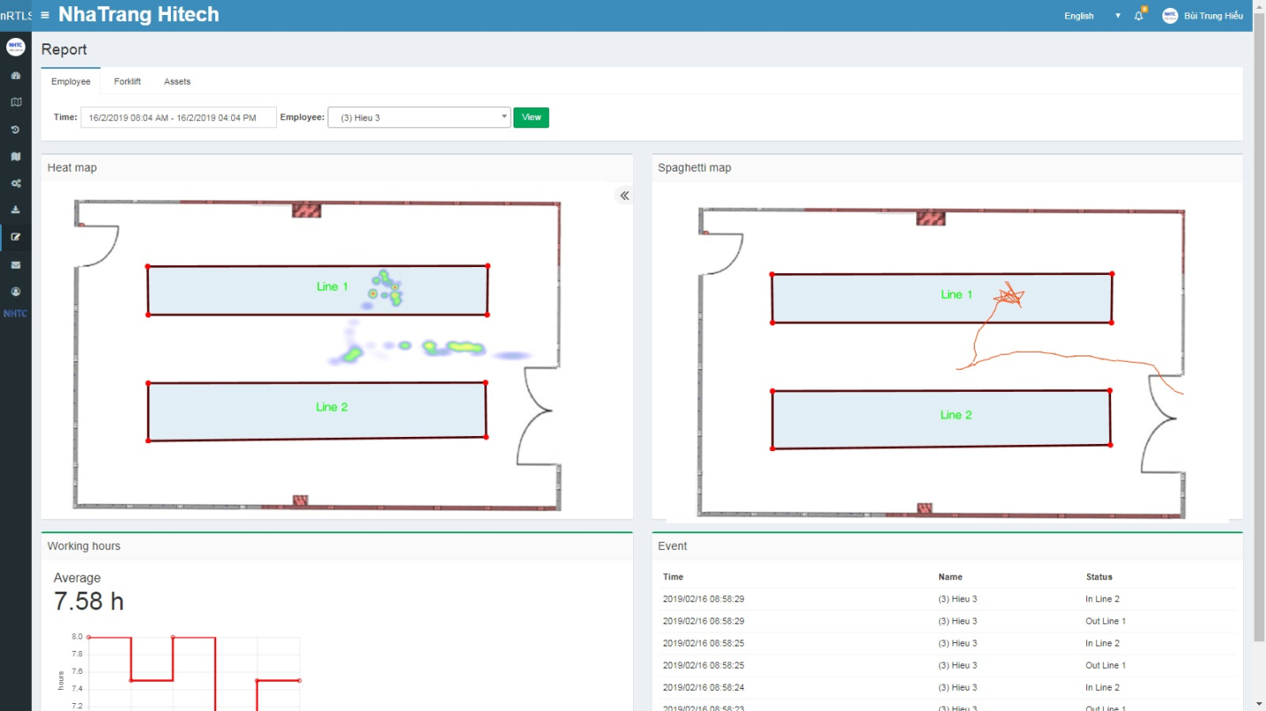 - Realtime location and history location of the worker in the factory in 2D or 3D.