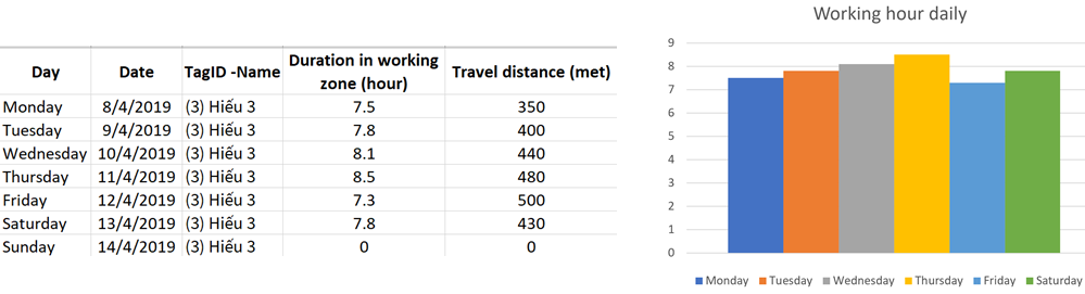 - QuảnWorking duration of the worker based on the geofencing (virtual zone)